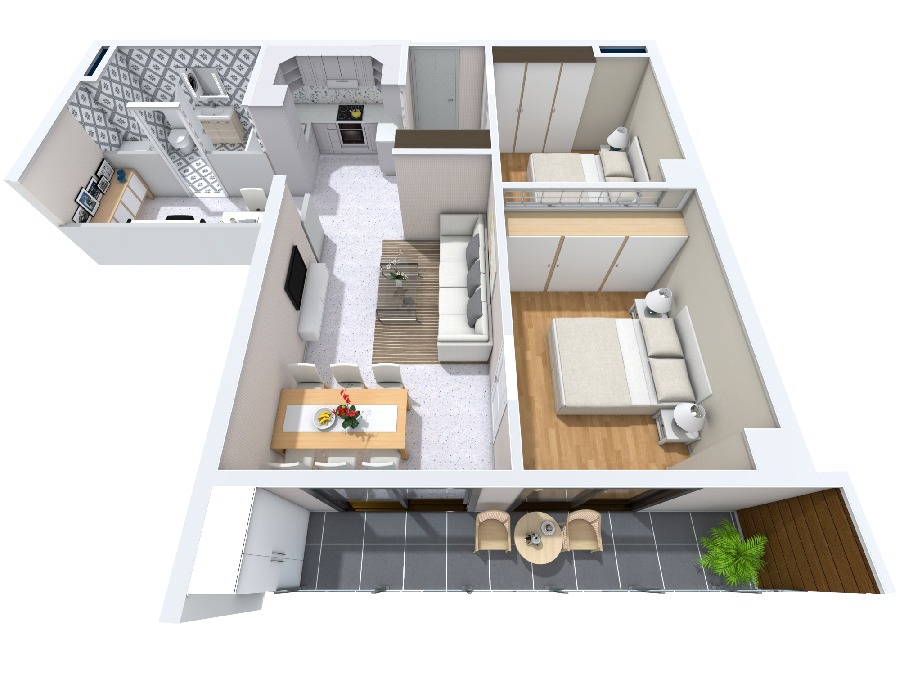 2 საძინებლით, იზოლირებული სამზარეულოთი