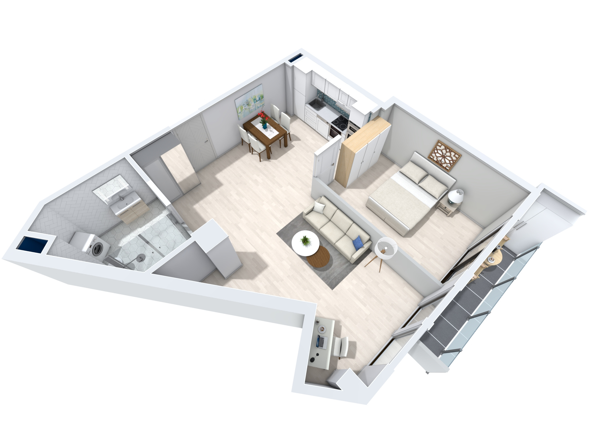 1 საძინებლით, იზოლირებული სამზარეულოთი